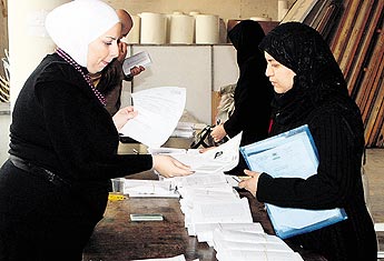 Refugiados iraquíes reciben en las oficinas de ACNUR la documentación que les permitirá sacar dinero de los bancos sirios en Damasco, Siria. El Alto Comisionado de la ONU para los Refugiados (ACNUR) comenzó ayer a distribuir fondos a 19, 528 iraquíes con necesidades específicas registrados en sus oficinas.